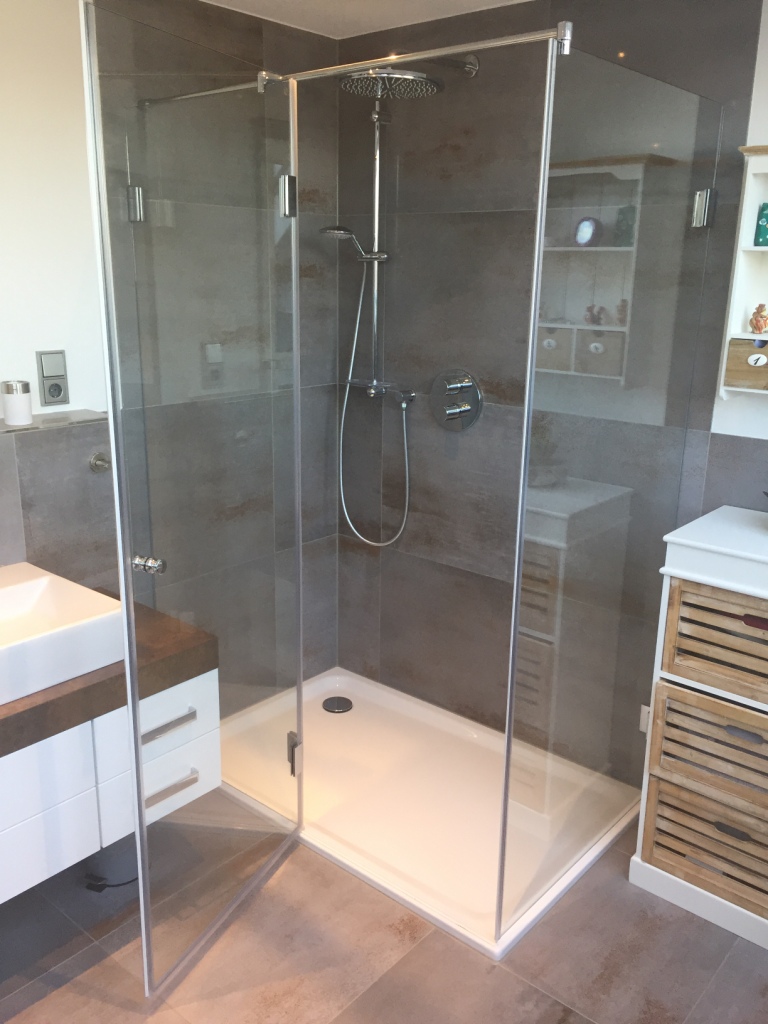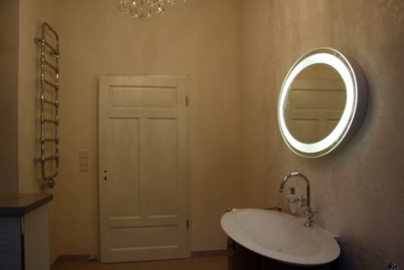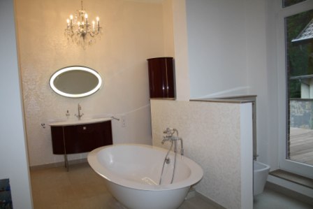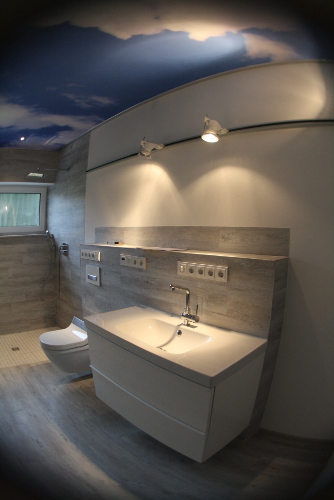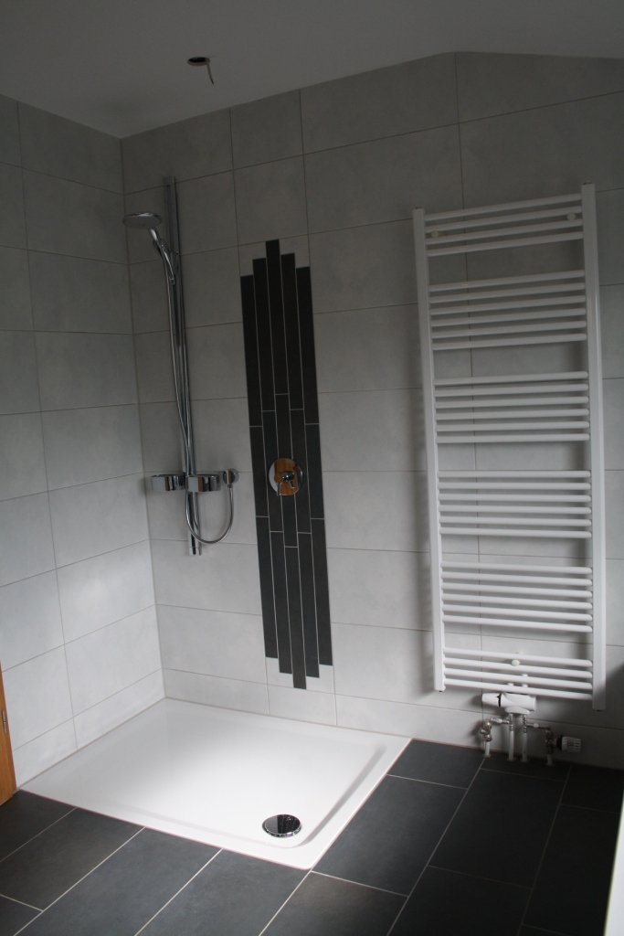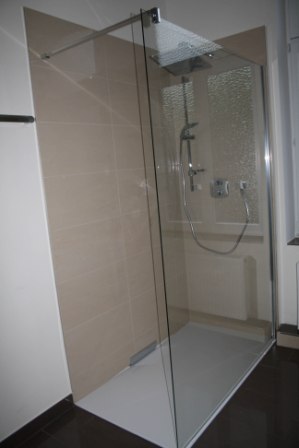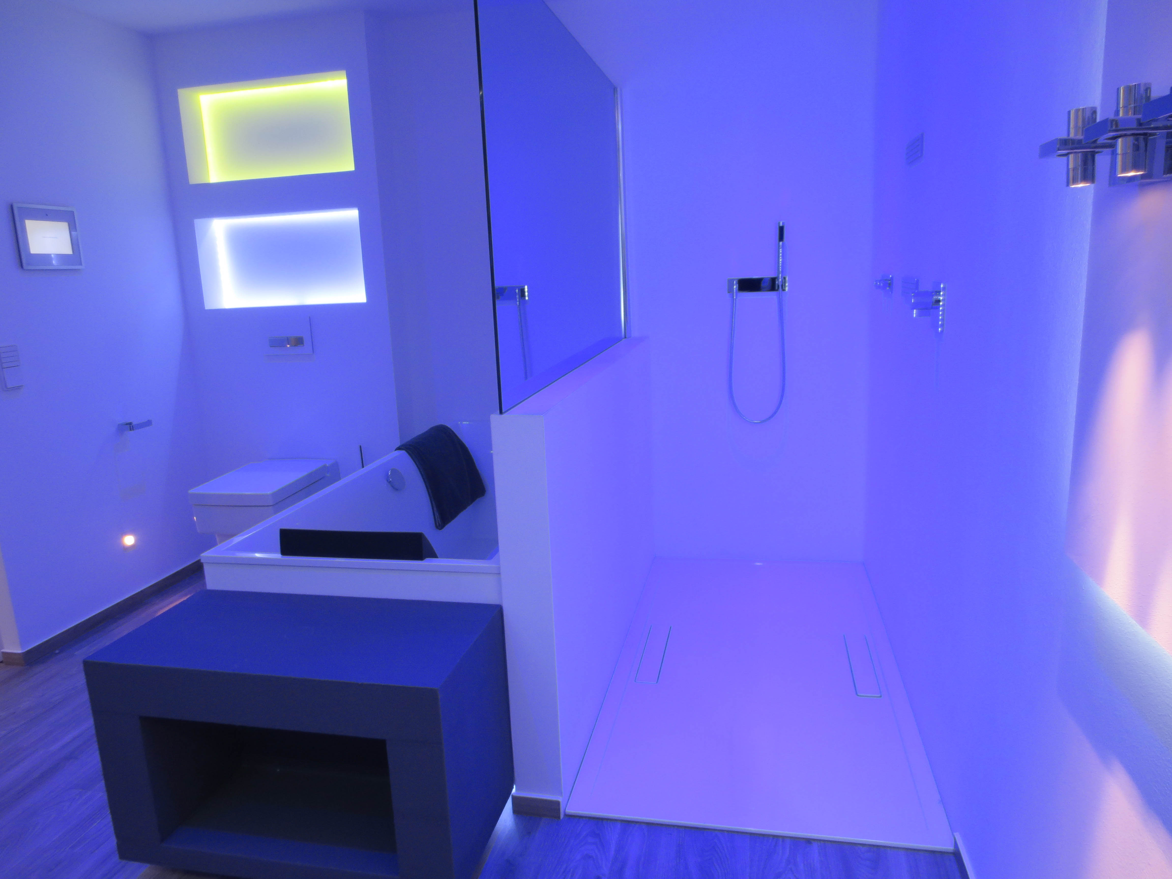 Duschbad und Hauptbadezimmer mit Wash-WC in einheitlichem Design. |