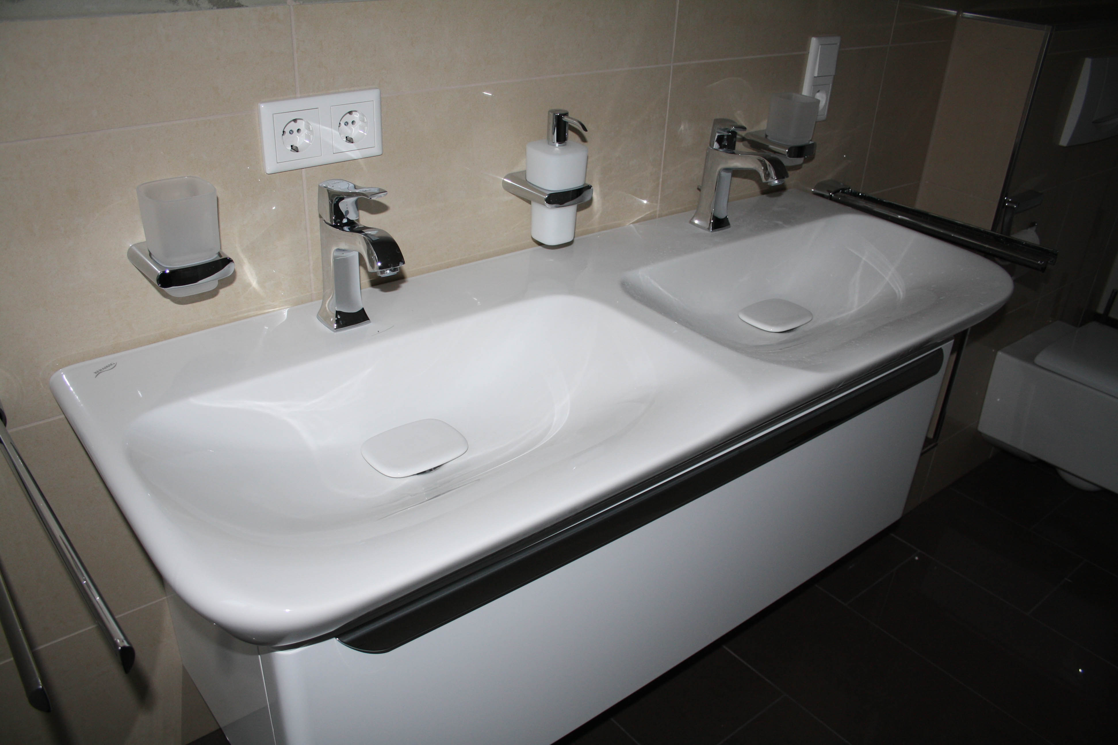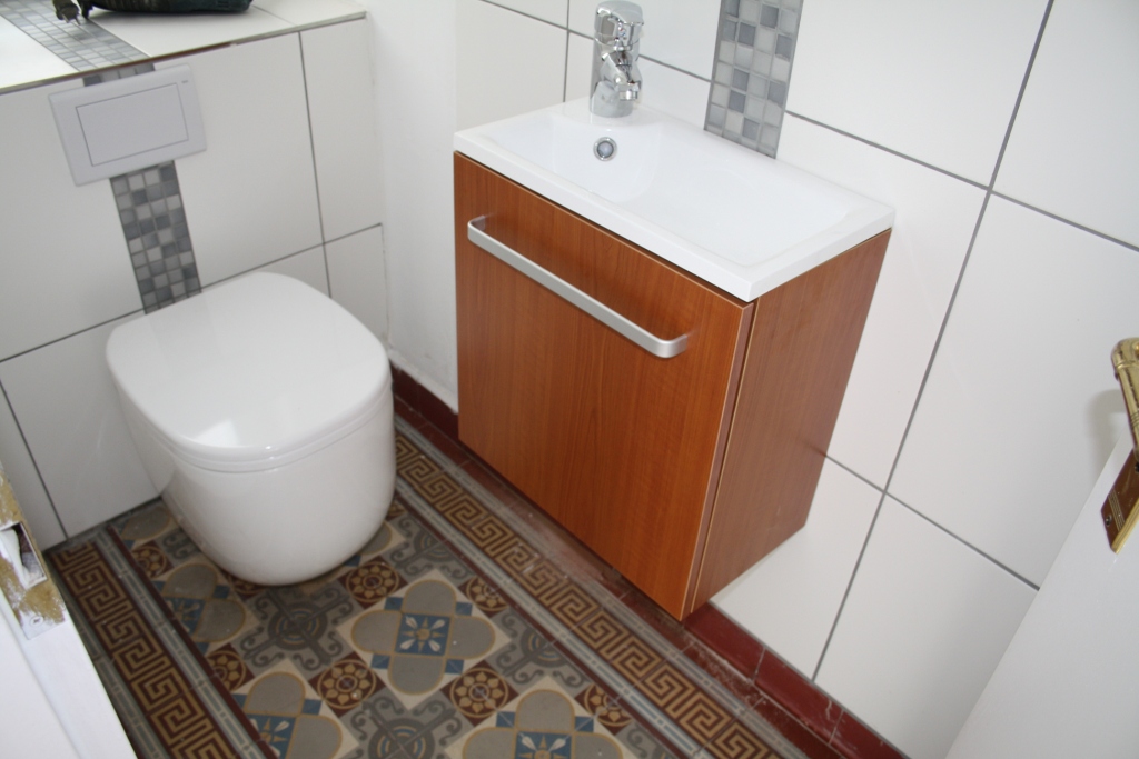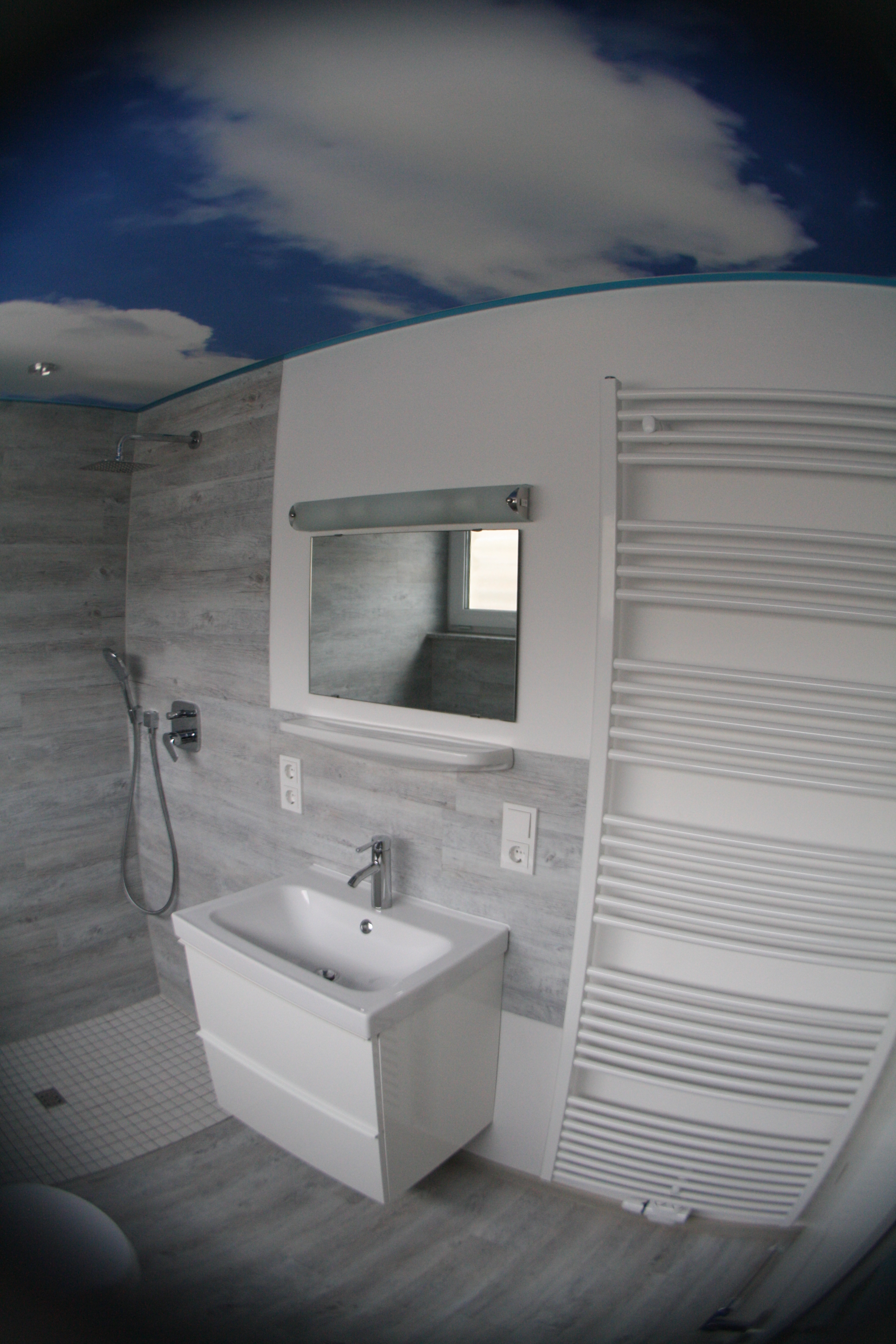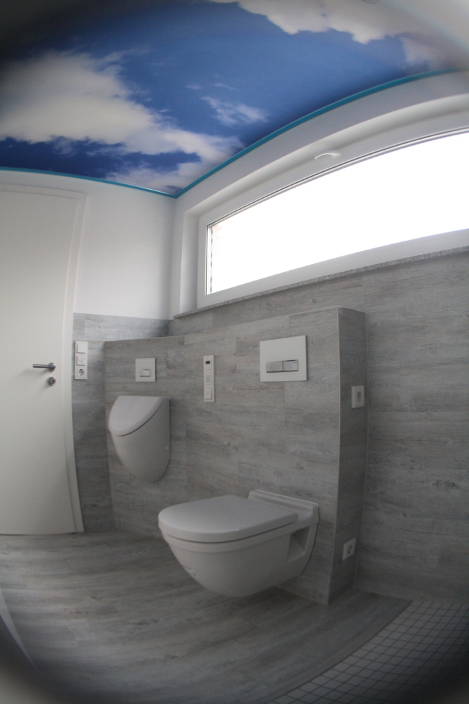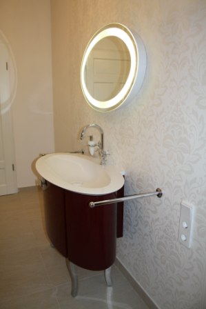 Badezimmer und Gäste-WC mit Schiebetür zur optimalen Nutzung des Raumes. |