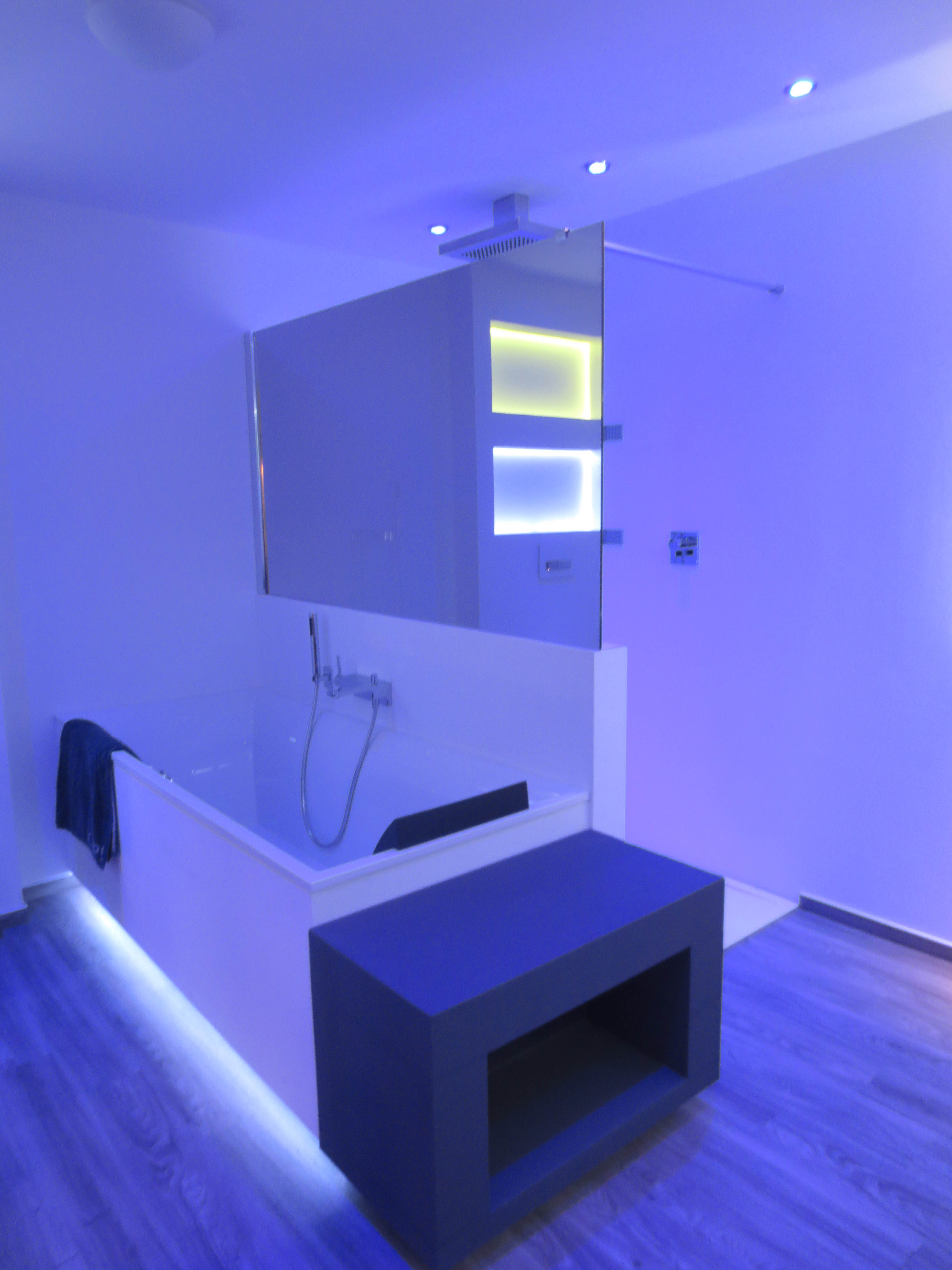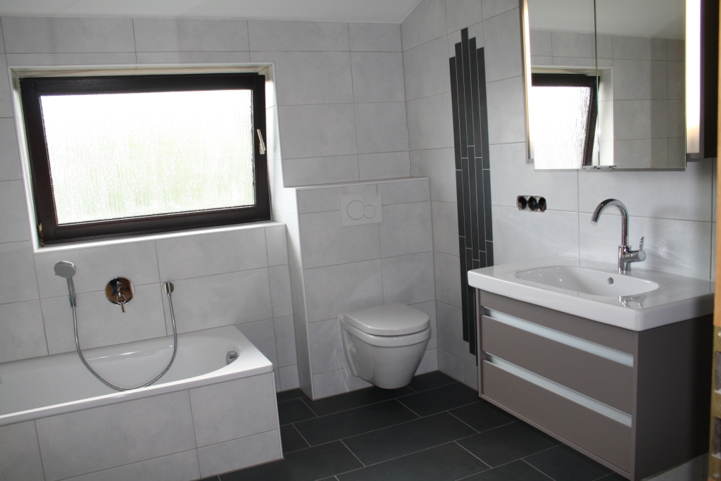 Wannenbad mit wiederkehrendem Flieseninlay. |